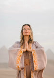 My NEW ANCIENT KEMET COLLECTION was with the insistence of the Goddess ISIS in honor of ANCIENT KEMET ( ANCIENT EGYPT) - as a bridge to embody by remembrance the golden age frequency, magic & miracles. It features beautiful embroidery trim on the sleeves and collar of the ancient hieroglyphs including the Eye of Horus and their most sacred ‘key of life’ symbol, the Ankh. ![]()