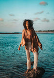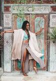 Proudly produced under Fair Trade working conditions, each garment is individually hand-painted in accordance with ancient batik practices. Any inconsistencies should not be considered as flaws, but as an integral part of the garment that confirm its beautiful hand made process. While slight color variations may occur due to the handcrafted nature of our pieces, rest assured that any unique difference is a testament to the beauty of the handmade process. With our commitment to quality and craftsmanship, you can trust that your kimono will maintain its vibrant colors and impeccable finish for years to come.