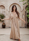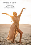 This beautiful kaftan is my modern day take on this Grecian/Egyptian time in history. The material is hand woven by loom & made with a blend of cotton and Rami. It can be worn reversible (please see pictures) and I have added a hidden bra clasp on the front side neckline so you can either deepen the neckline or close it in order to wear it with a bra (like I have to). I also placed the same unviable clips along the splits of the kaftan so you can close the splits up if you are wearing the dress in a modest environment or country such as Egypt!